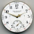 The most unusual Moorhouse dial known. Made for an 18s Waltham and signed on the back,